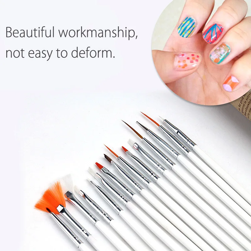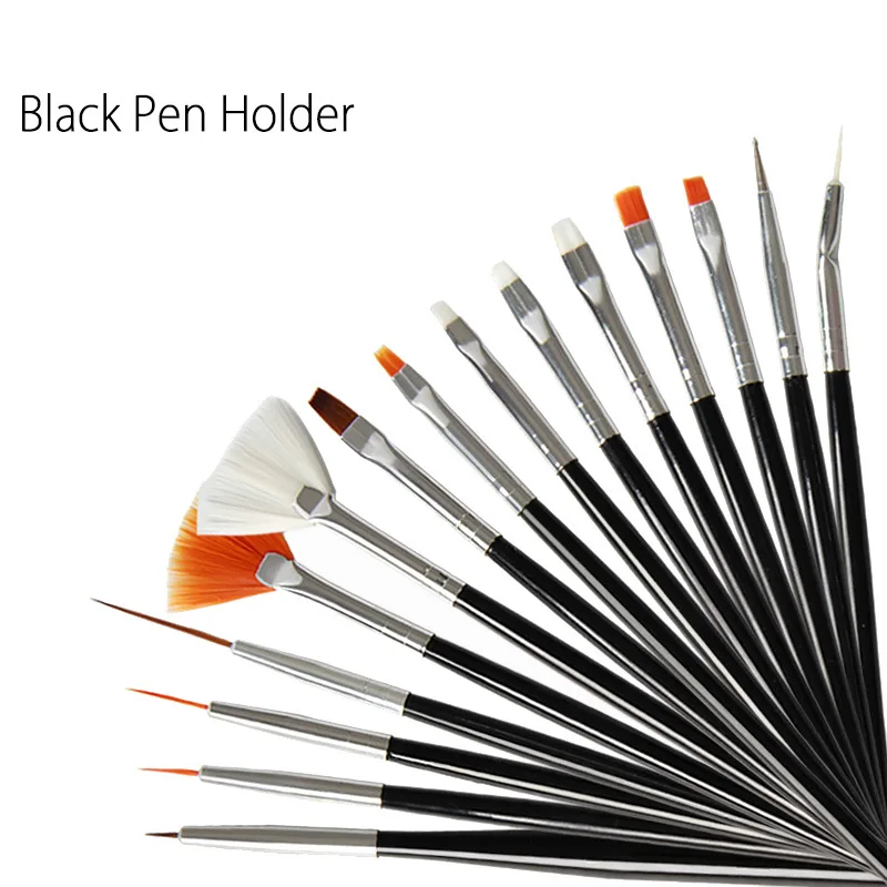 15Pcs/Set UV Gel/Powder Kolinsky Nail Brush DIY Nail Art Line Drawing Pen 3D Acrylic Nail Brush