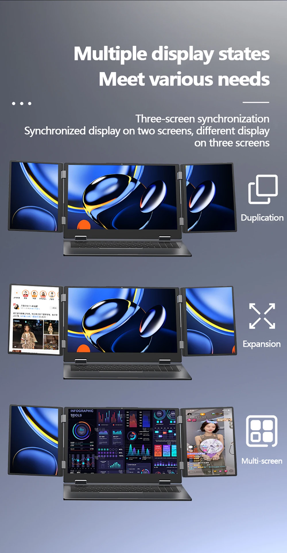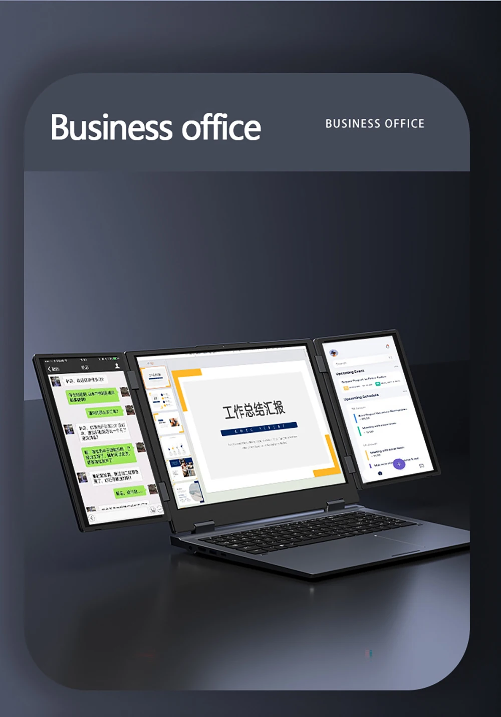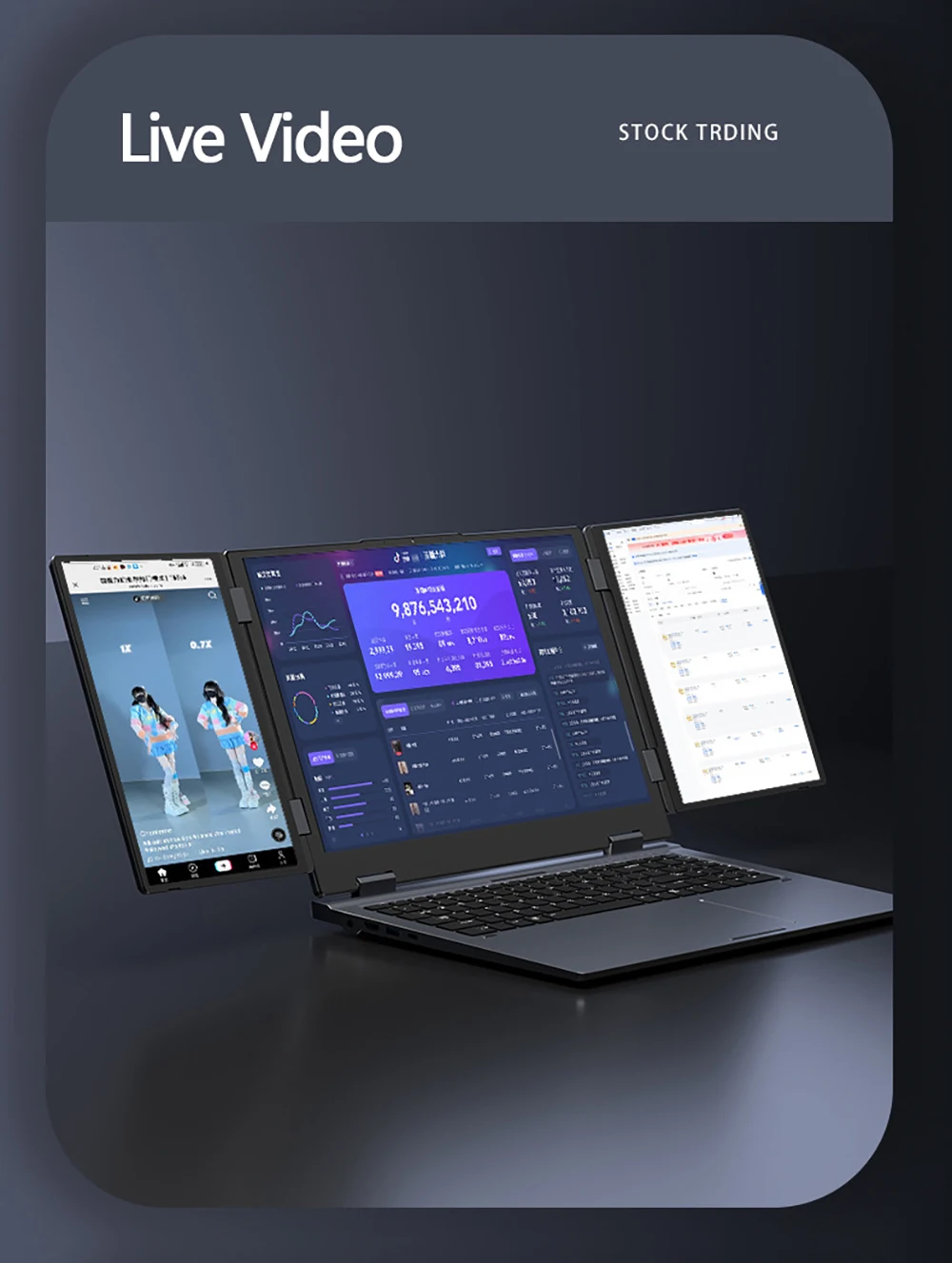 Carnet avec trois écrans et différents affichages