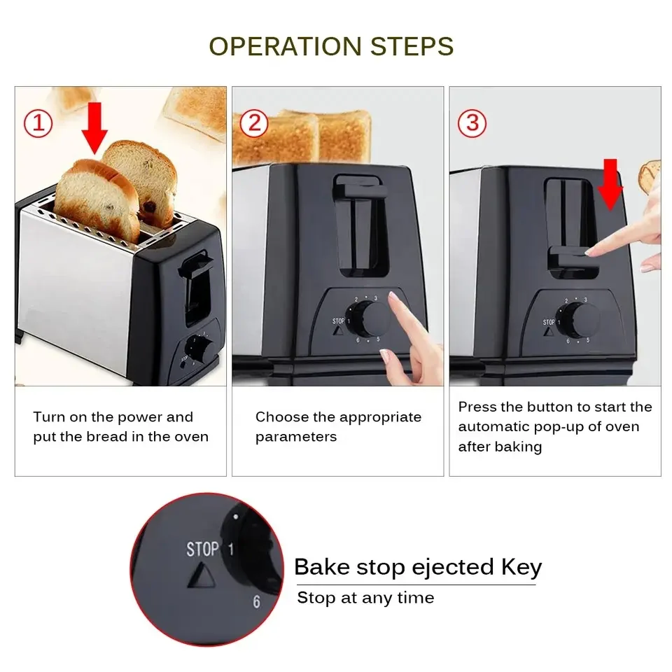 1. 6 Adjustable gear optional 2. Bake 2 slice bread