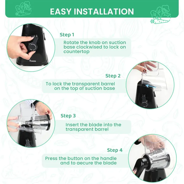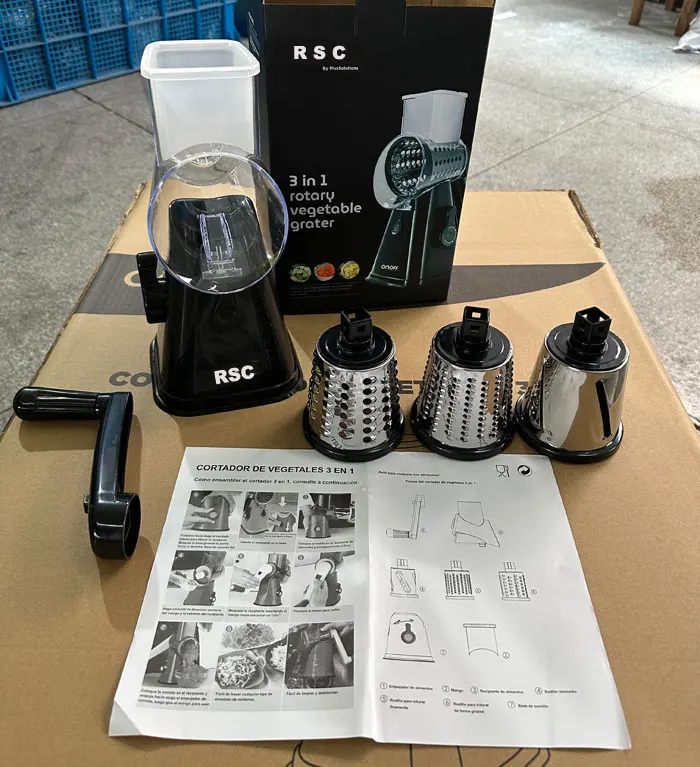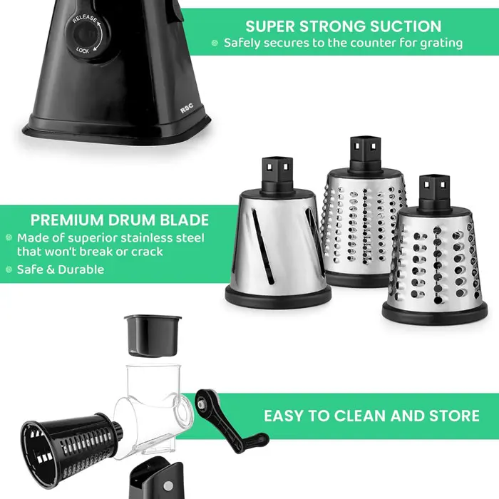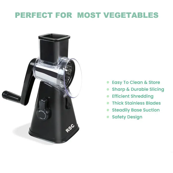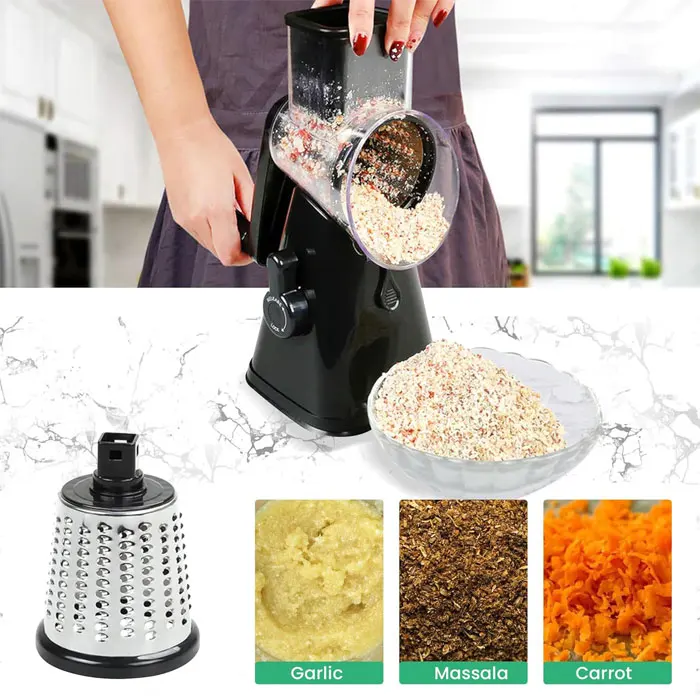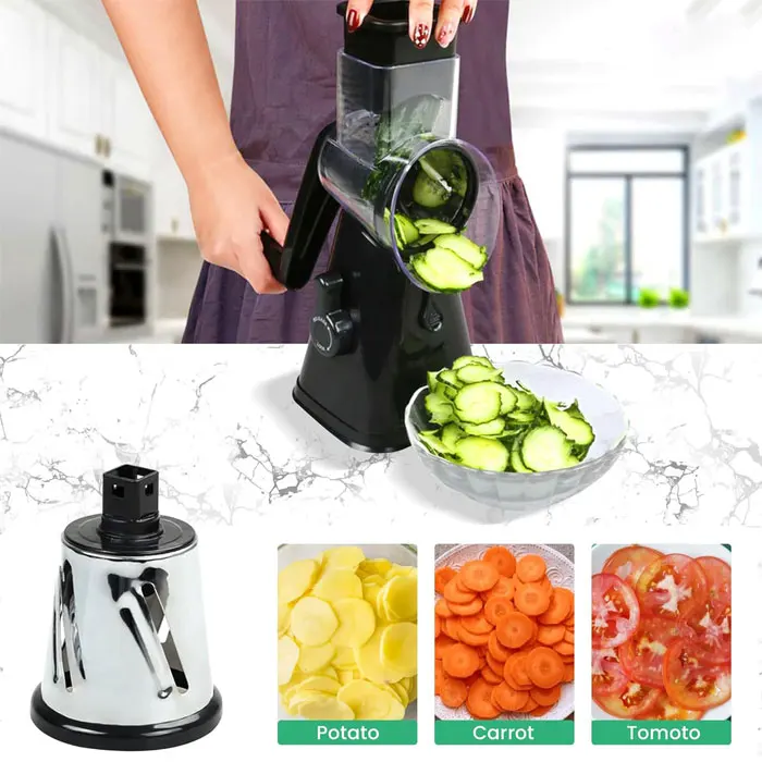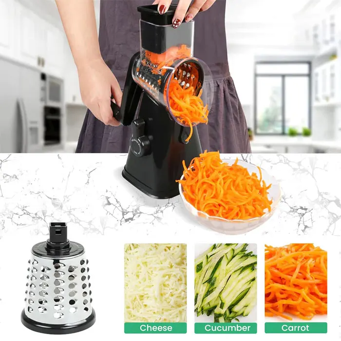 3 In 1 Vegetable Mandoline Slicer Rotary Drum Grater Nut Shredder Veggie Cutter Peeler Spiralizer Cheese Chopper