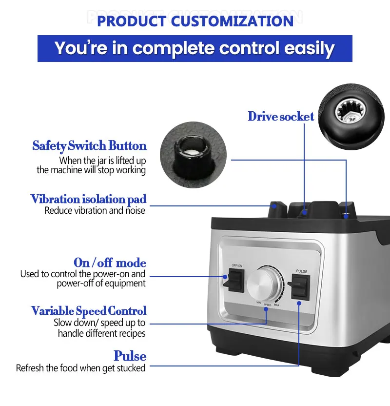 Control Type : Knob Function : Smoothies Maker power w : 2200w type : Commercial Blender app-controlled : No application