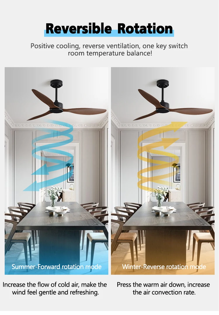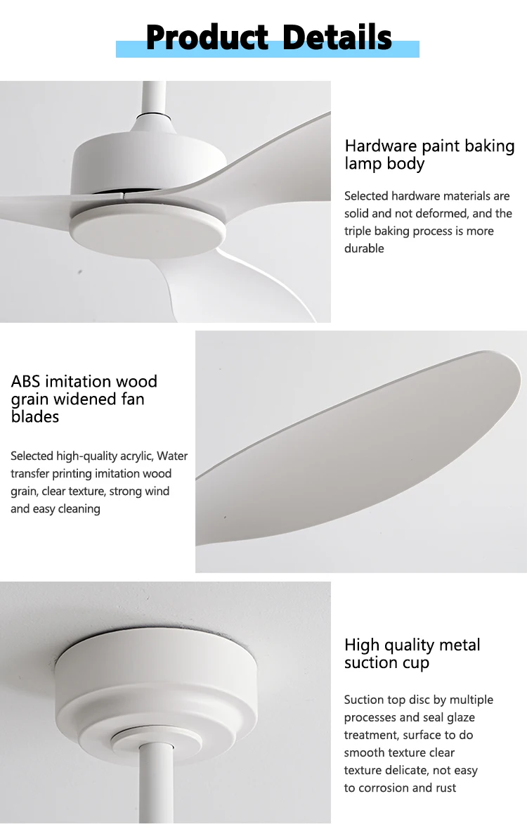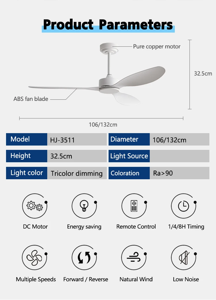 SPECIFICATIONS Blade Size: 25/42/52inch Body Material: ABS,Copper,Iron,Wood Brand Name: INTELLIGENT FAN Control Method: Remote Control Features: Ceiling Fan Finish: Iron
