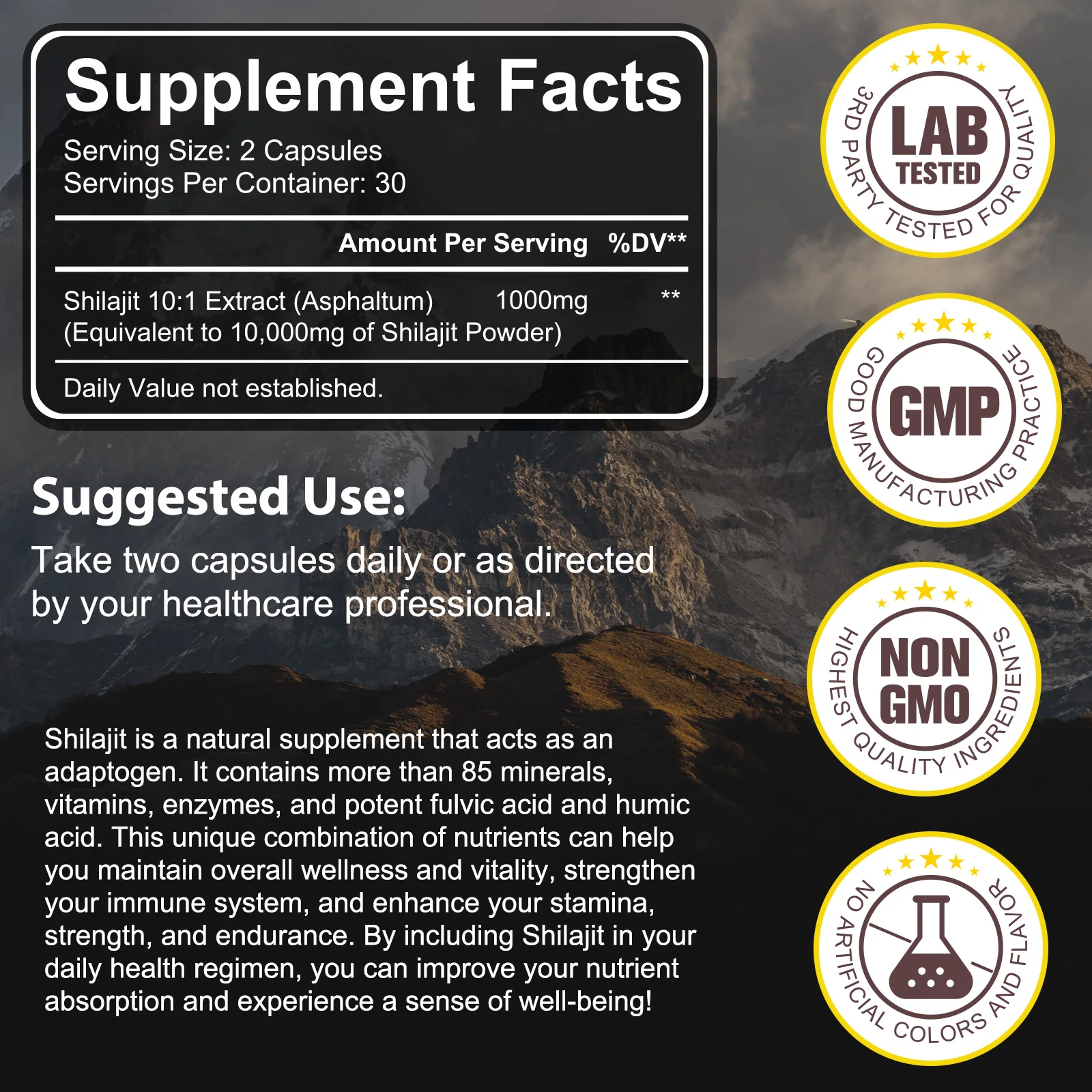 THE BEST SHILAJIT – Unlock the benefits of Pure Shilajit with Dorado Nutrition’s high-potency supplement. Each capsules contains 1,000mg of Shilajit extract, providing a powerful and effective dose.