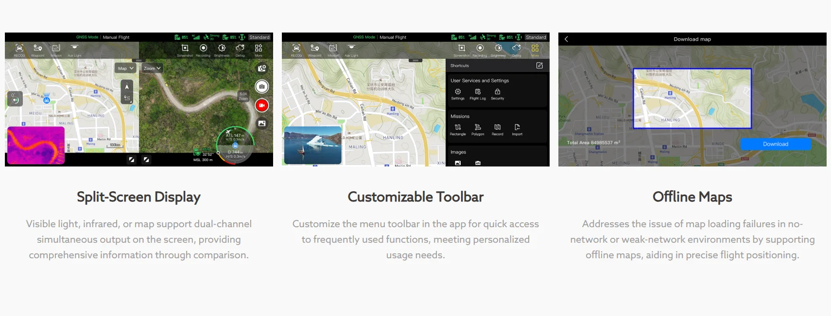 A-Mesh Networking: Enables dual-drone collaboration and synchronized mission workflows.