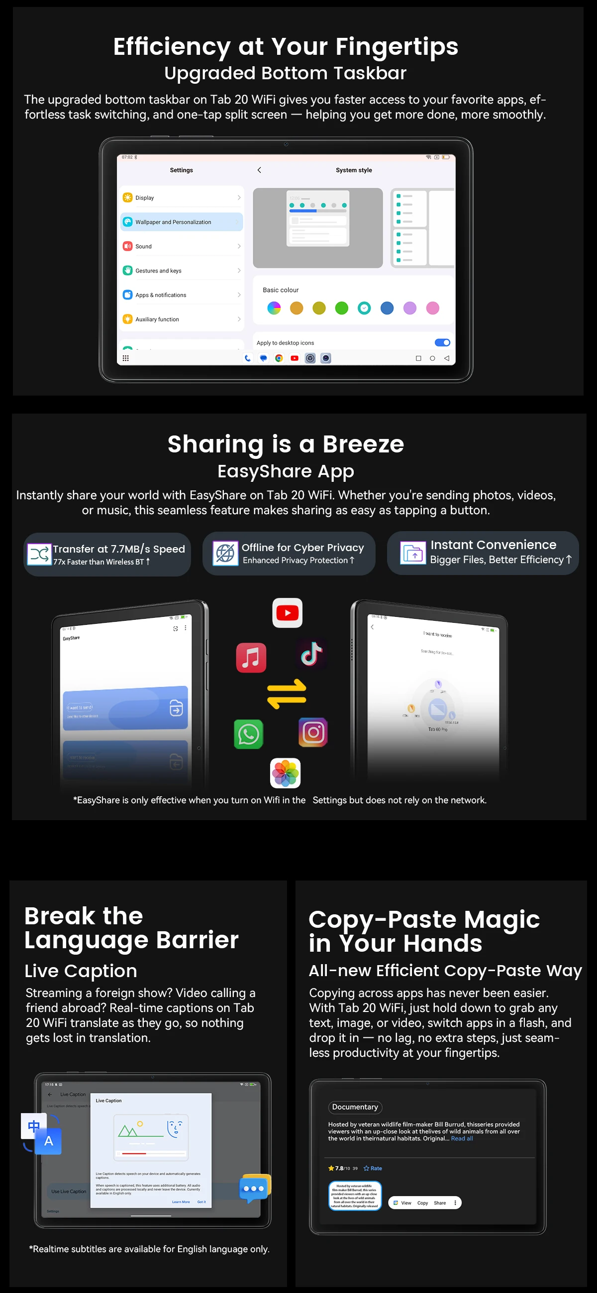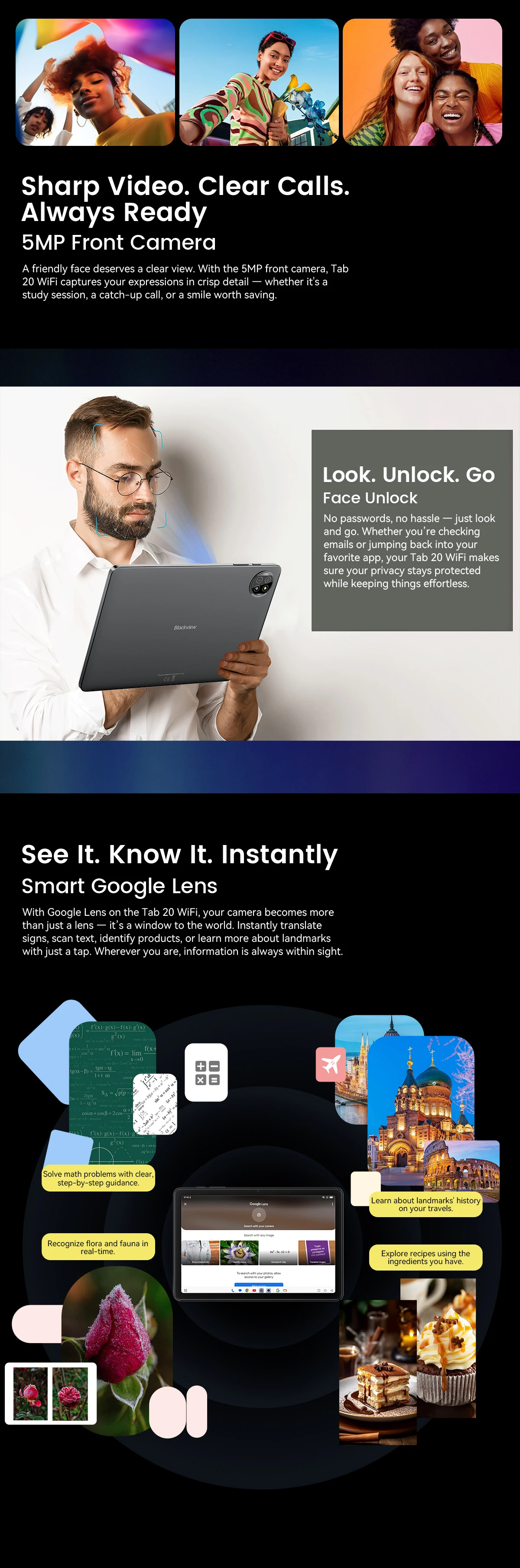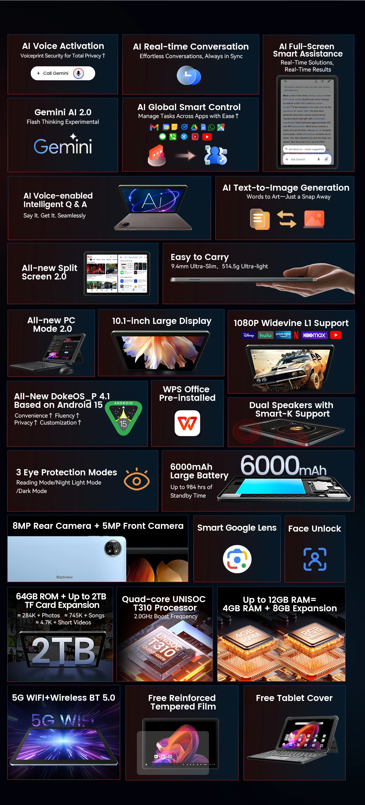 Screen : 10.1-inch, IPS, 1280*800 Resolution,79% Screen-to-body Ratio, 60Hz Smart Refresh Rate
