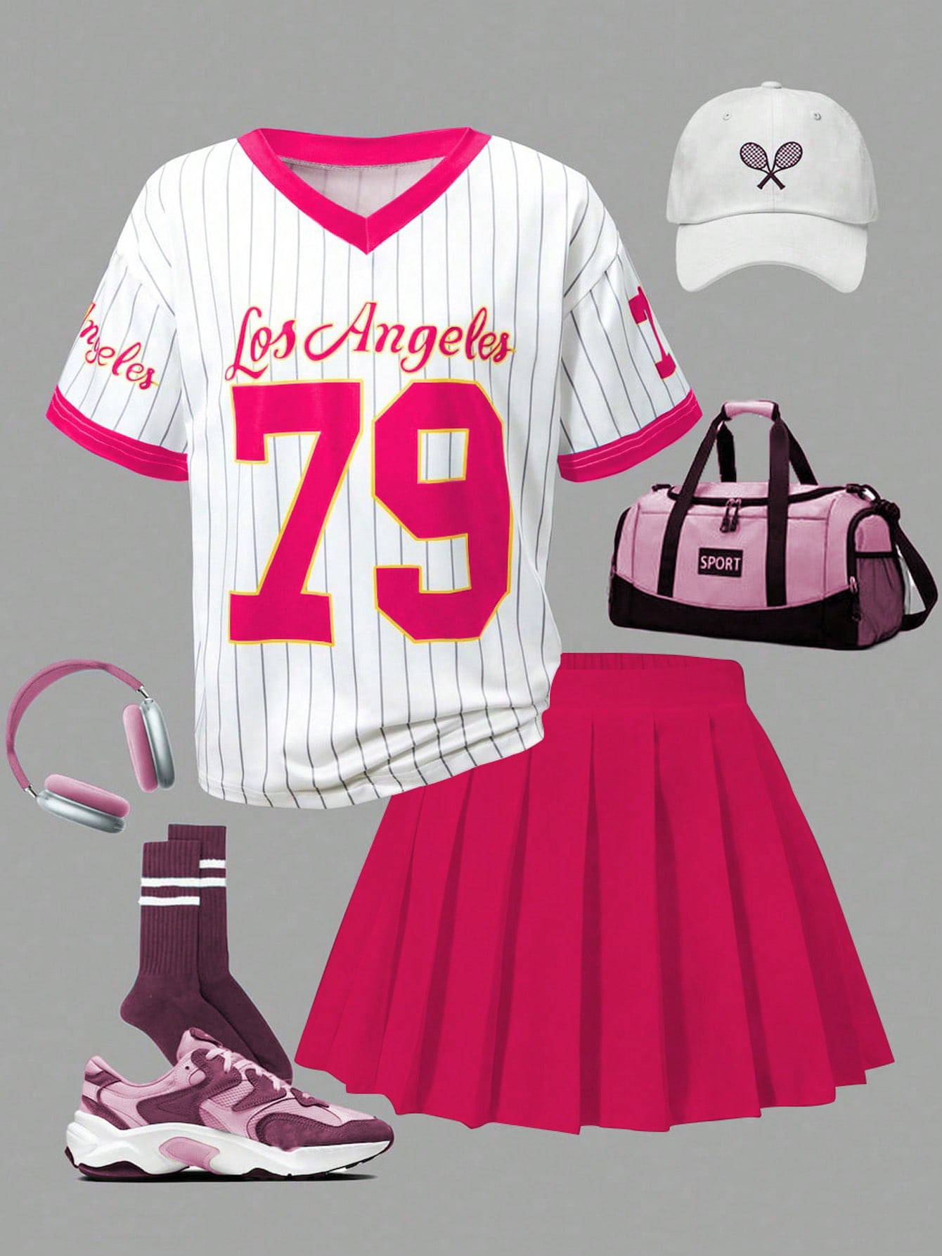 Be the first to review “Girls 2 Pieces Casual And Fashionable Sports Set, Featuring A Small V-Neck Sports Digital Striped Printed Top Paired With A White Pleated Skirt Set, Suitable For Children And Girls To Wear In Summer Daily, Outdoor, Campus, And Party Occasions”