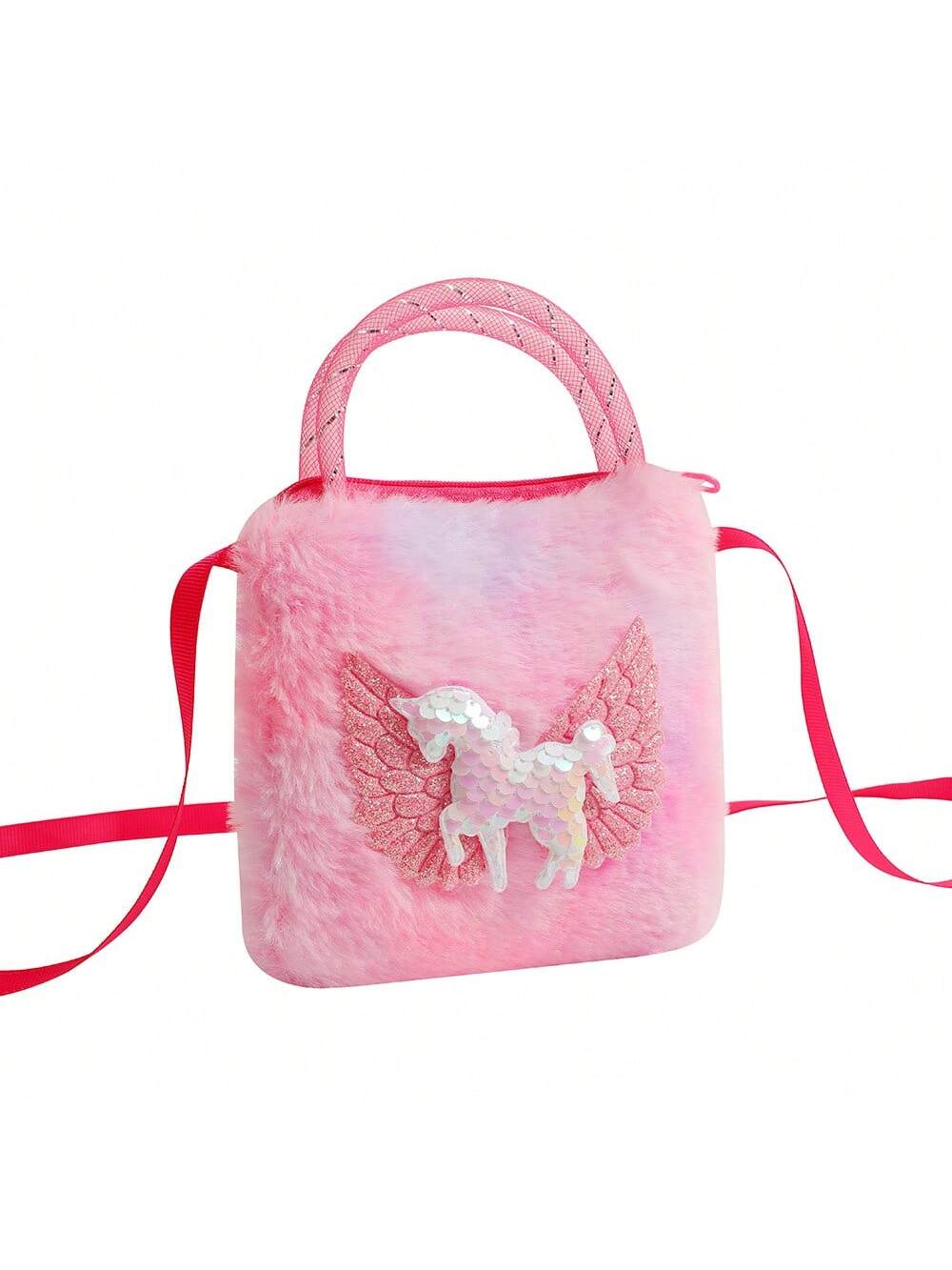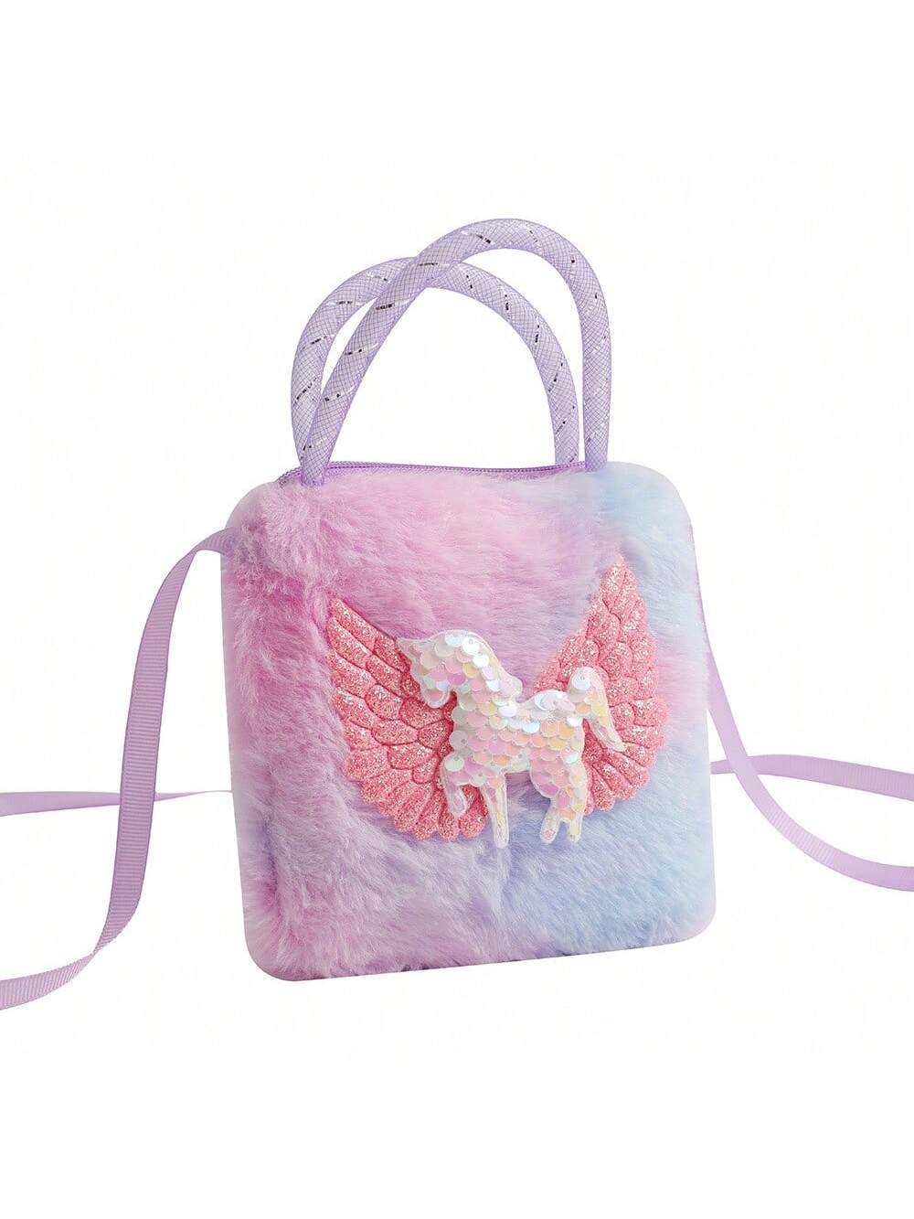 Glitter Pegasus Handbag – Cartoon Tie-Dyed Plush Crossbody Bag, Kindergarten Girls' Mini Square Bag Coin Purse, Small Cute Pegasus Unicorn Sequin Storage Bag, Random Tie-Dye Position