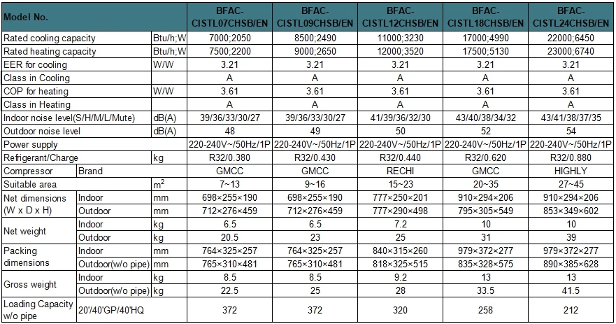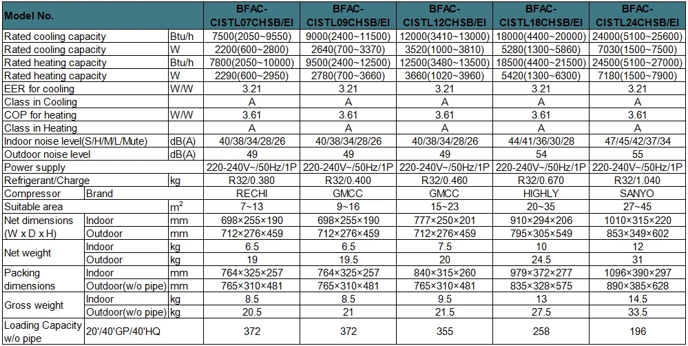 - EER for Cooling/COP for Heating : 3.21/3.61