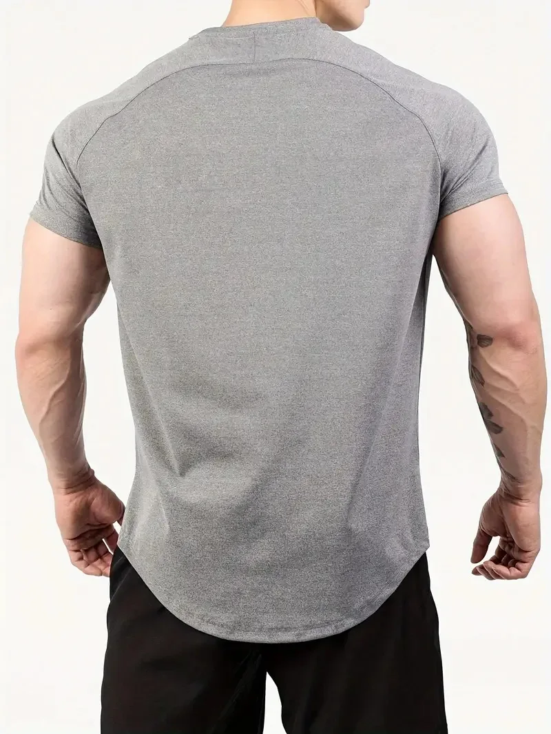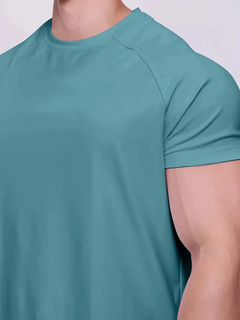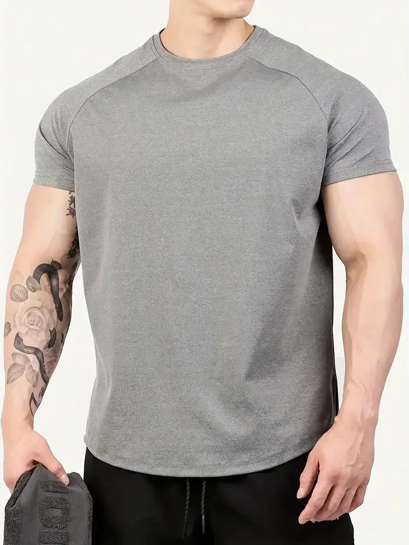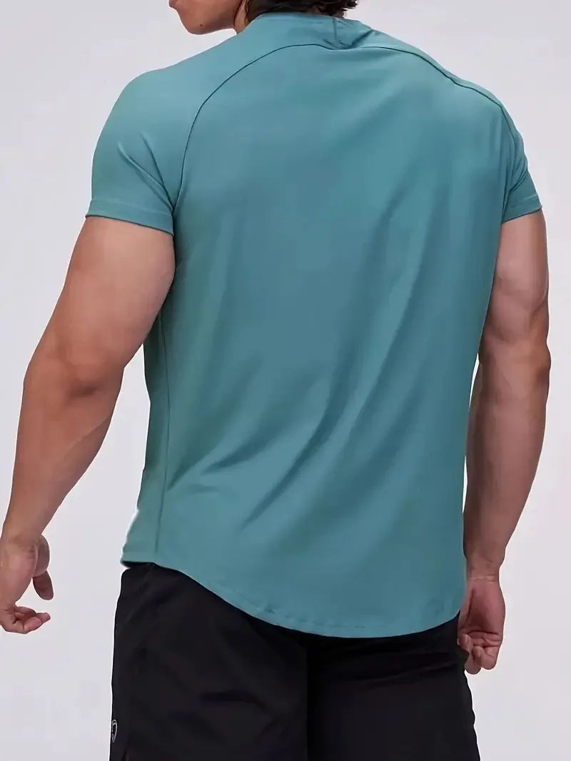 Men’s Quick Dry Fitness Sports Suit European Solid Color Short Sleeve T-Shirt for Summer Running Size S
