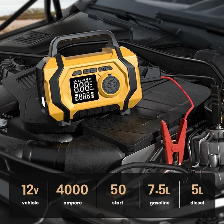 Multi-Function Car Jump Starter – 4-in-1 Emergency Power Bank with Large Capacity, Fast Charging & Air Pump