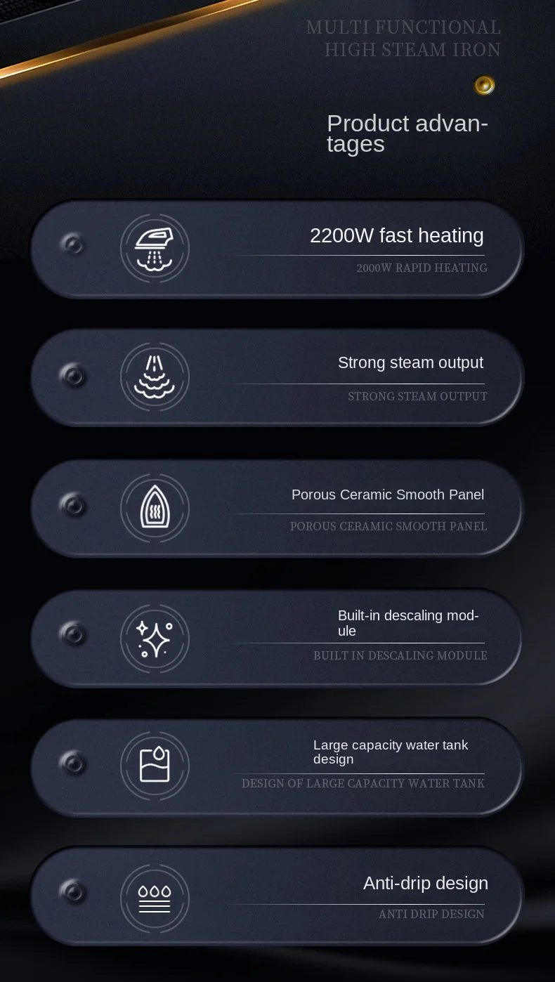 - function : Self cleaning, Anti-Calc, Auto Off, Burst of Steam, Self cleaning, Anti-Calc, Auto Off, Burst of Steam