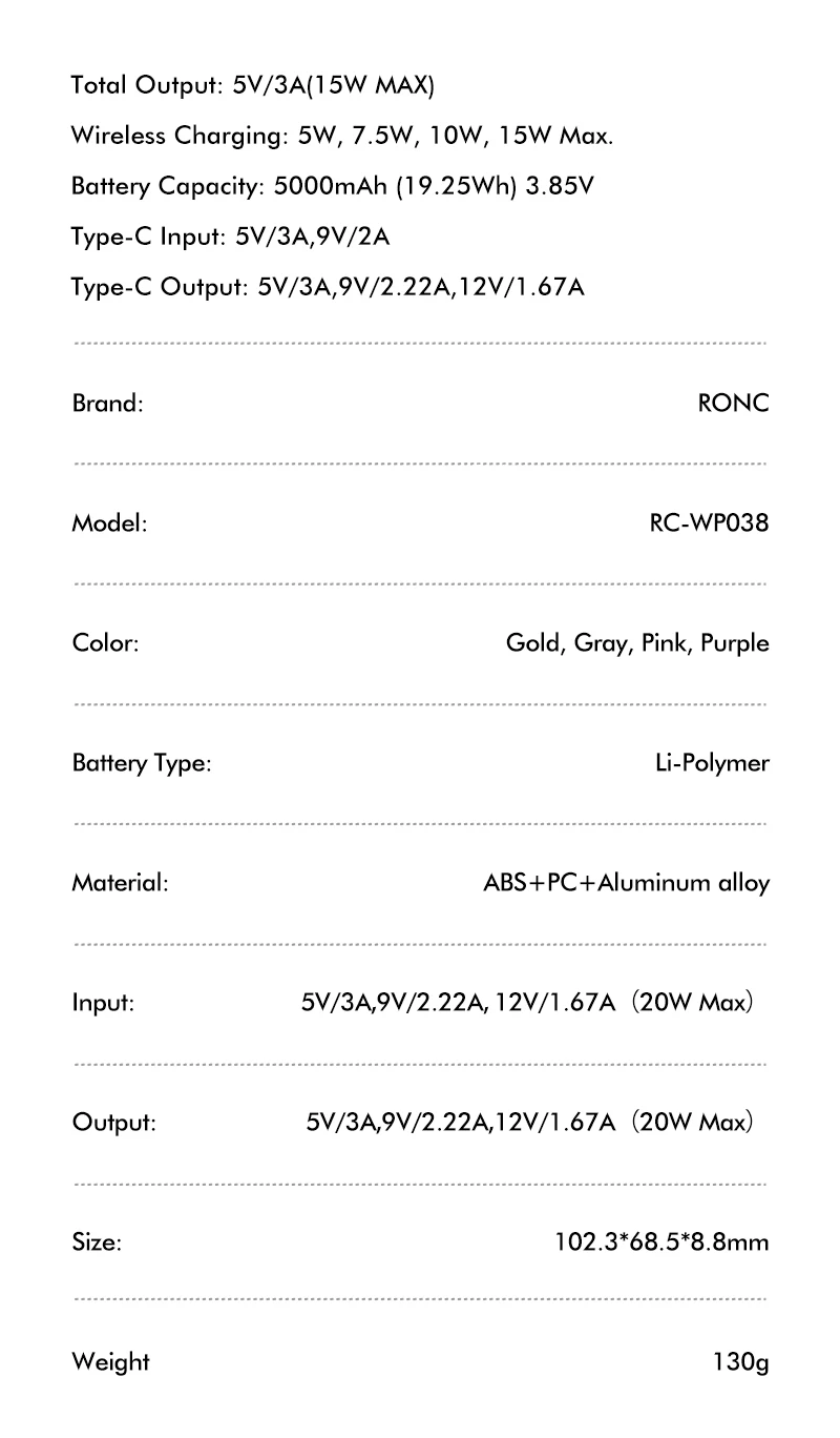 - Battery capacity : 5000/10000 MAh Real Capacity