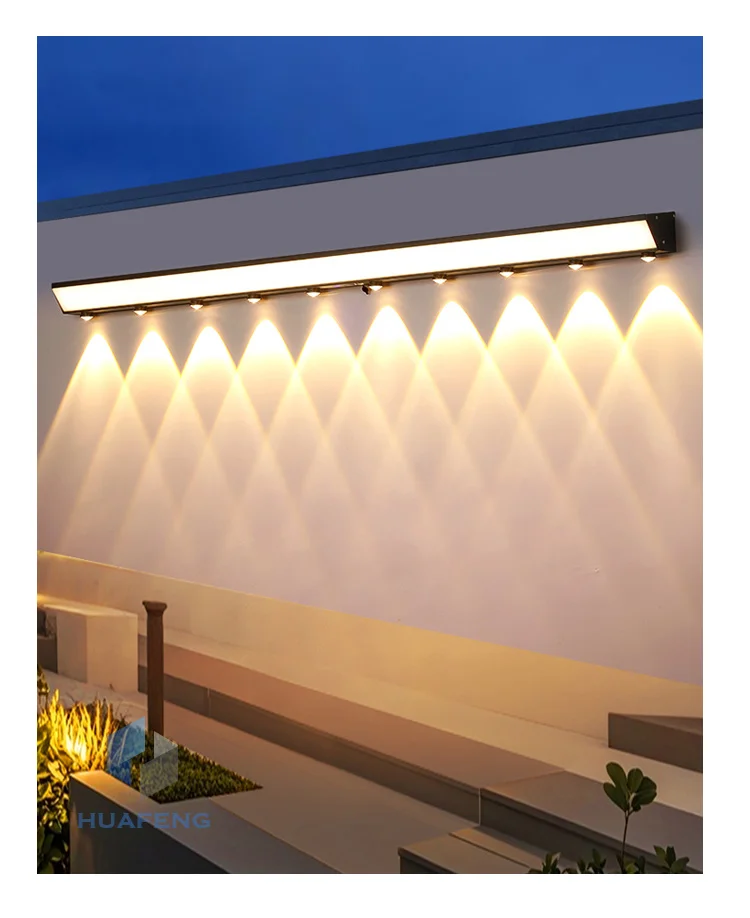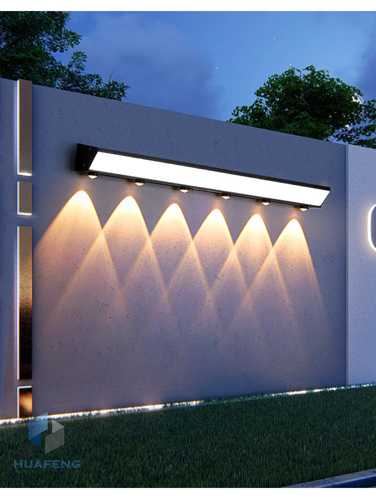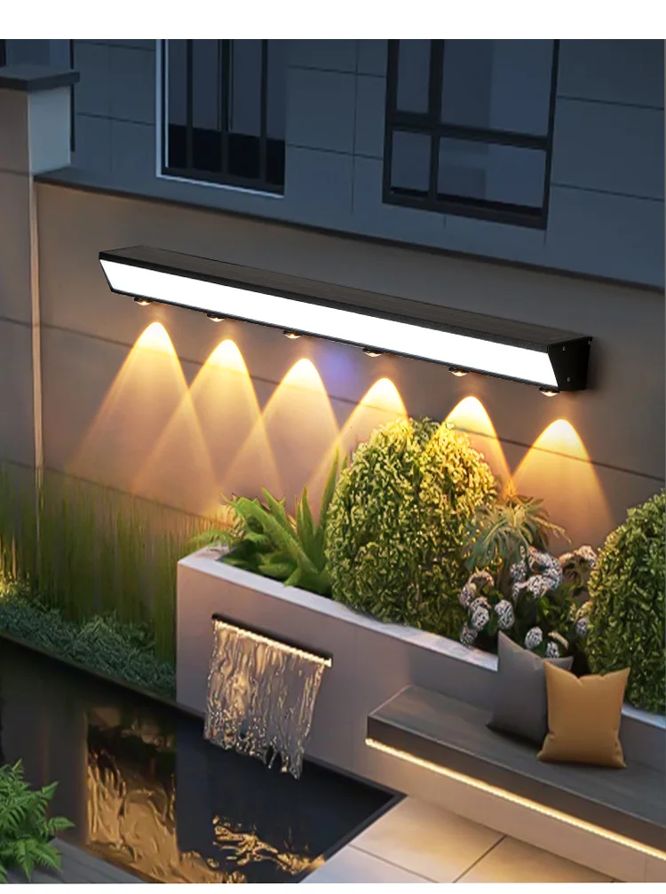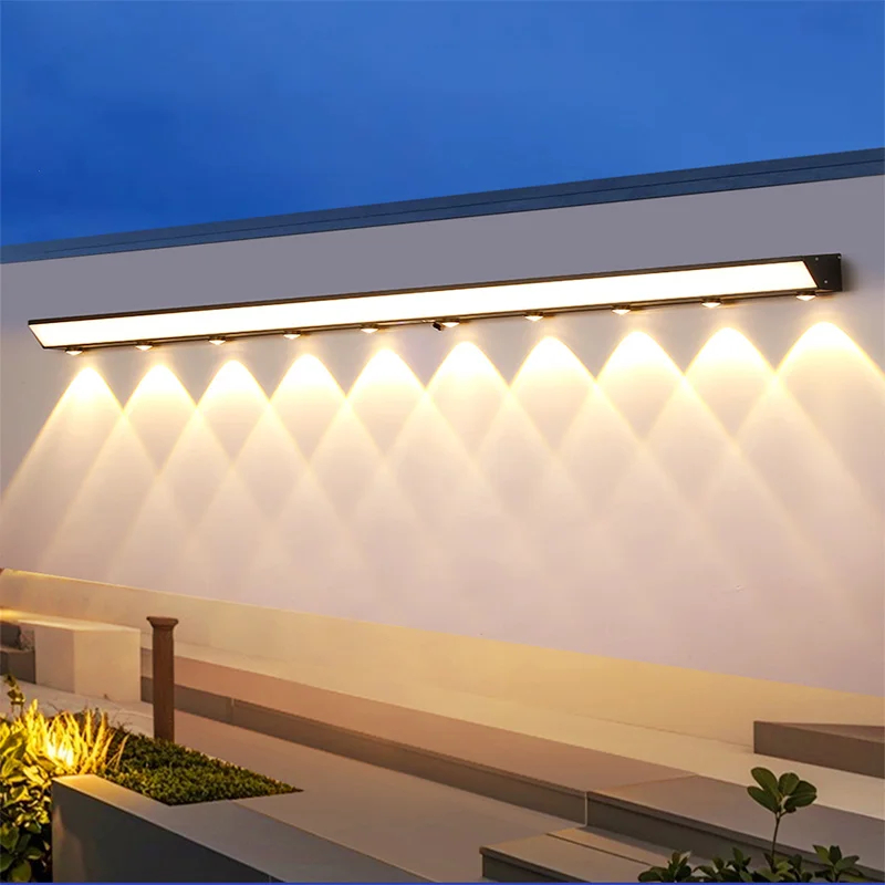 Waterproof LED Outdoor Wall Light Long 18W Modern Black Aluminum Alloy Exterior Lighting for Yard